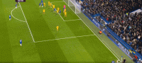 上半场进行到第45+5分钟,狼队利用桑切斯扑球脱手的机会,多尔蒂在门前捅射得手,将比分扳平为1-1。全场观众爆发出一片哗然声,狼队球迷开始相互击掌庆祝。双方球员在场上拼抢激烈,场面十分激烈。