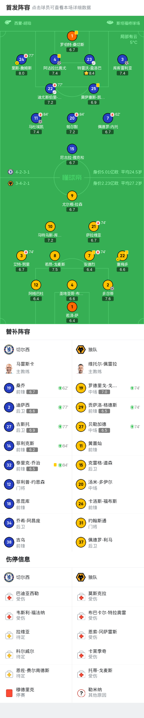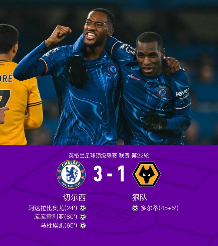 综上所述,切尔西3-1战胜狼队,结束了五轮不胜的尴尬局面,球队整体表现稳定,全队球员展现出了团结拼搏的态度。希望球队能够在接下来的比赛中继续保持良好状态,取得更多的胜利。球迷们也将一如既往地支持着自己心爱的球队。